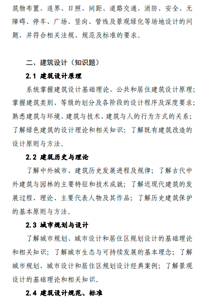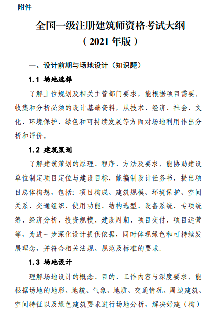 全国一级注册建筑师资格考试大纲(2021年版)